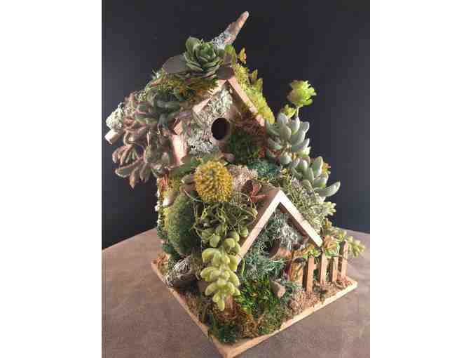 This lovely little home enveloped in (faux) succulents is fit for a hobbit or a house sparrow! Perhaps the sparrow would have the upper bunk and the hobbit the lower. Middle earth real estate has never looked so charming. Bring a little woodlands into your home!