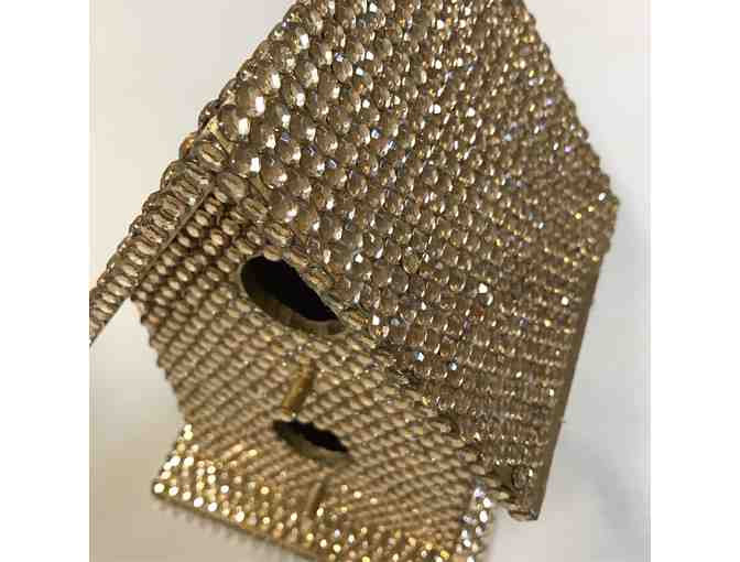 You aint got a thing if you aint got that bling! Covered with over 2,000 glittering (faux) gems and sparkling from every angle, this bejeweled birdhouse will take your breath away! A glittering beauty that looks right out of Vegas, could be yours with the right bid!