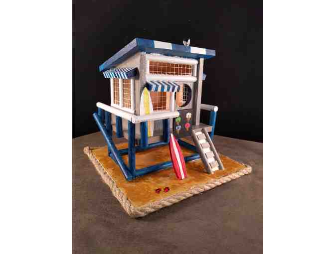A delightful summer beach bungalow ready for occupancy! Featuring painted surfboards and a "fly up" ice cream window. A colorful, playful, whimsical addition for your home! Hang it with a view of the pool to make it a truly waterfront property.
