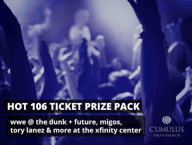 Hot 106 Pack including a pair of WWE Tickets, Fri 4/14 at the Dunkin' Donuts Center and a pair of Future, Migos, Tory Lanez & more Concert Tickets, Tue 5/23 at the Xfinity Center.