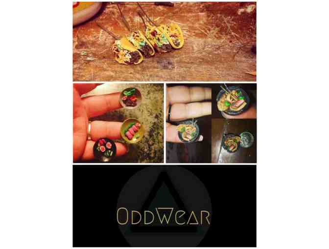 Worcester artist, Ashley Ferencik, has donated a hand-picked selection of a variety hand crafted jewelry items from her OddWear collection. She specializes in miniature food as well as other unique creations. Check out her pieces online here.
