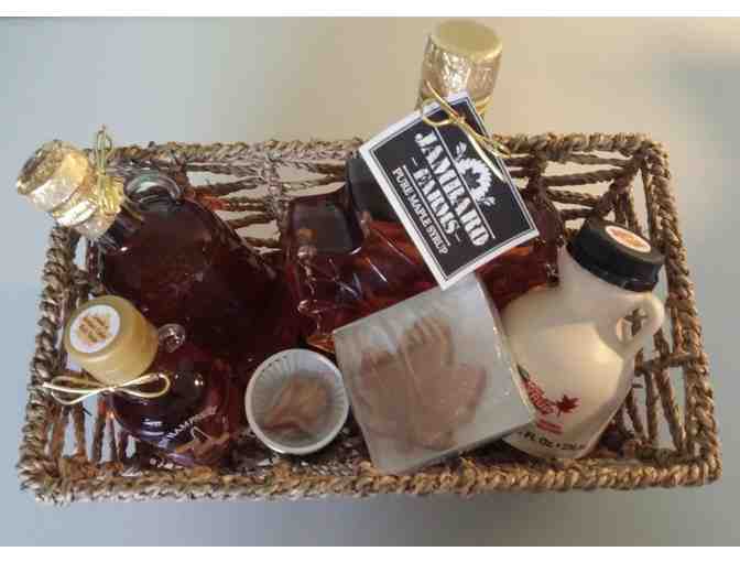 From Jambard Farms in Hollis, NH, a Maple Syrup Gift Basket which includes: