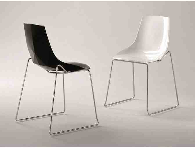 Aceray 134 Side Chair, White Chrome Sled Base Side Chairs with white plastic seat. Winner receives 4 chairs.