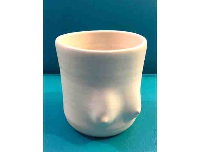 These Breast Mugs are handmade by artist and potter Joanna Lobel from Brooklyn, New York.
