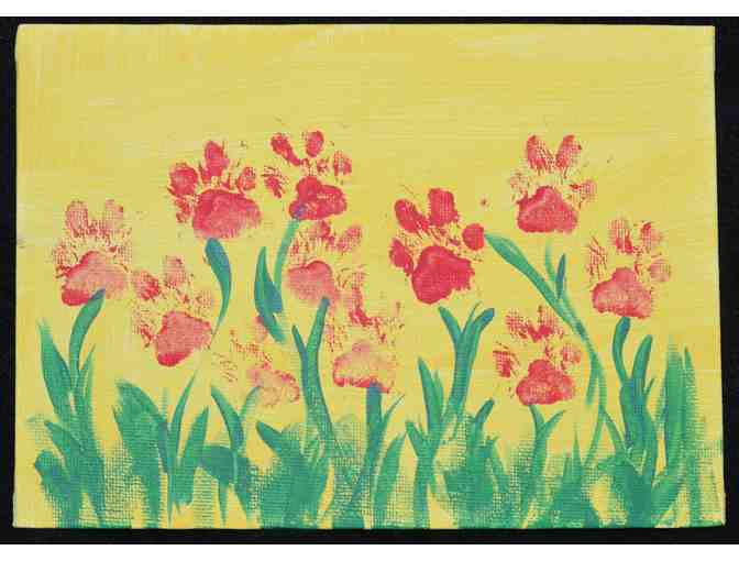 "Cheery Poppies on a Sunny Day" is #17 in the Art by Teddy debut collection. Unique, one-of-a-kind painting using non-toxic acrylic paints on a 5" x 7" canvas which includes Teddy's paw prints.
