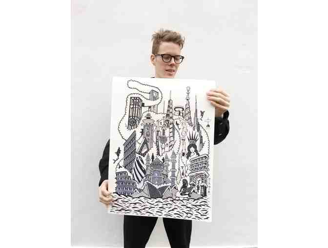 This piece of art is called "Ocean View". Made by the Danish artist Mormor. Mormor is well known in Denmark for his work with canvas, drawings and big murals all over the county.