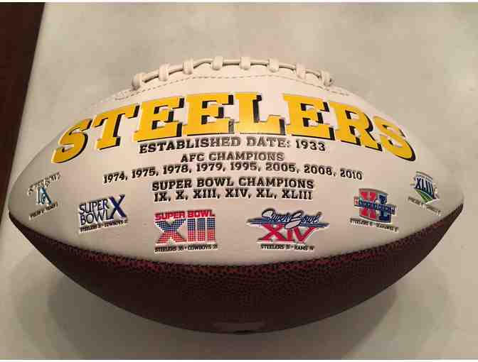 Steelers Superbowl Football signed by 7X Pro Bowler and 2X Superbowl champ Linebacker Andy Russell #34