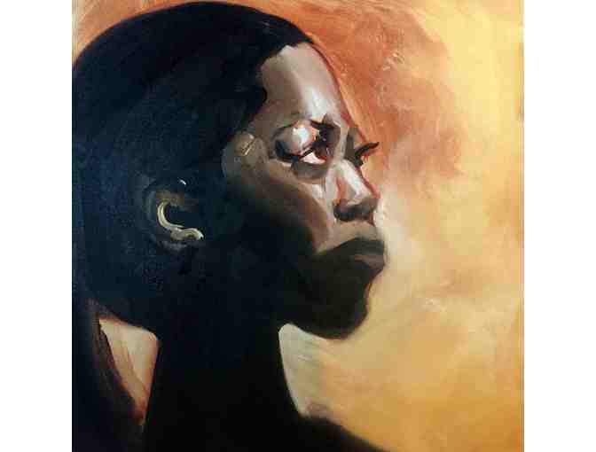 Eyes of Dawn captures the hope of a new day in the face of a beautiful female. Sensual and sculptural, the female eclipsed in shadow raises her soulful eyes to the dawn as light breaks across her face, revealing glory to come. A spontaneous piece, full of intuitive energy, rendered with loose, energetic strokes, Eyes of Dawn seeks to revive the viewer with the sense of glorious possibilities that comes with each new day.