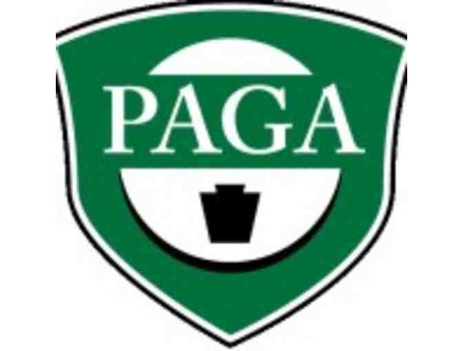 Two hours of private golf lessons from the Pennsylvania Golf Academy. The PAGA is dedicated to offering the finest instruction available for the fastest development of you game. The PAGA features PGA teaching professionals who will quickly assess your golf swing and help you set achievable goals on improving your game. This item is a must have for any golf fan.