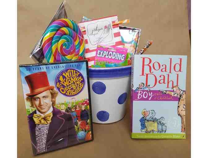 With a nod to the 8th grade class play "Willie Wonka", the 8th grade class parents bring you this sweet assortment of candy, candy themed items, a $10 candy shop gift card, Willie Wonka DVD and Roald Dahl book.