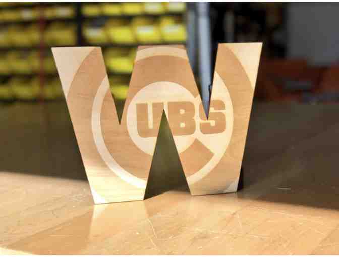 One of a kind laser etched and laser cut wooden W with the cubs logo made in our very own Maker's Lab. Take home a piece of Cubs and Lane Tech history!