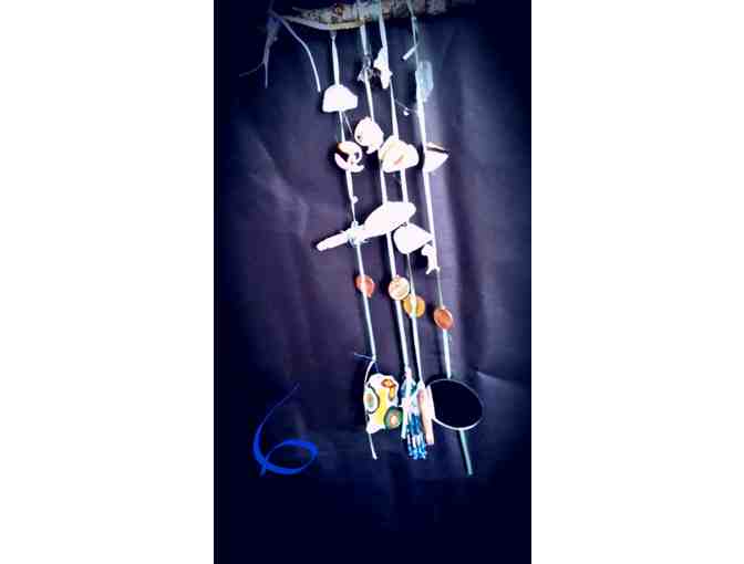 These delightful wind chimes made of ribbons, sea glass, shells, mirrors, beads and metal along with found natural items make magical sounds in the breeze. They are hand crafted by our amazing MontessorI Program artists! Embellish and adorn your home and garden with nature's beauty. They also make wonderful and unique gifts.