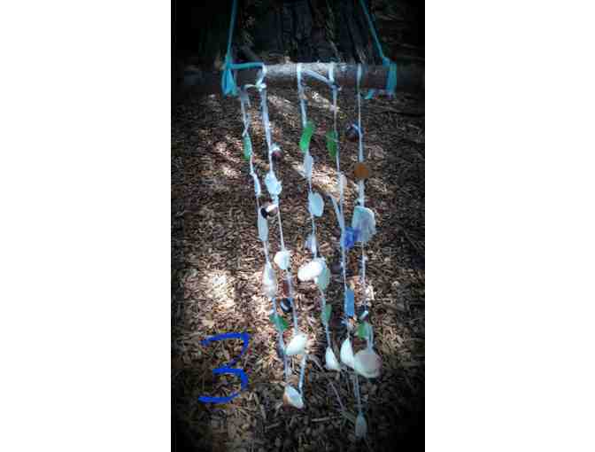 These delightful wind chimes made of ribbons, sea glass, shells, mirrors, beads and metal along with found natural items make magical sounds in the breeze. They are hand crafted by our amazing MontessorI Program artists! Embellish and adorn your home and garden with nature's beauty. They also make wonderful and unique gifts.