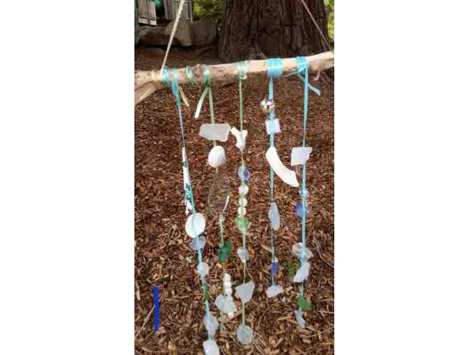 These delightful wind chimes made of ribbons, sea glass, shells, mirrors, beads and metal along with found natural items make magical sounds in the breeze. They are hand crafted by our amazing MontessorI Program artists! Embellish and adorn your home and garden with nature's beauty. They also make wonderful and unique gifts.