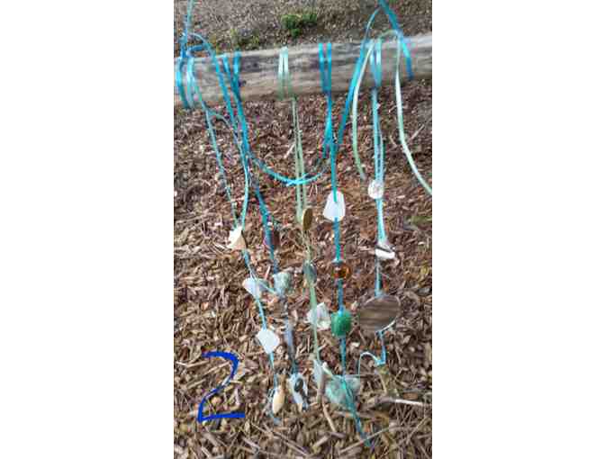 These delightful wind chimes made of ribbons, sea glass, shells, mirrors, beads and metal along with found natural items make magical sounds in the breeze. They are hand crafted by our amazing MontessorI Program artists! Embellish and adorn your home and garden with nature's beauty. They also make wonderful and unique gifts.