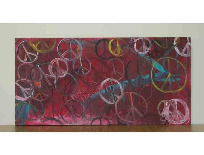 The painting "PEACE" was created by Elizabeth Laul Healey, a well known artist, sculptor, environmentalism and publisher. Elizabeth is a former resident of San Clemente and is now living in North Carolina where she is exhibiting regularly in renowned galleries and publishing books.