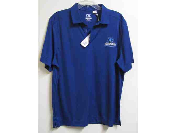 Men's, Medium, Royal Blue, Golf Shirt with CSUSM Cougars Logo.