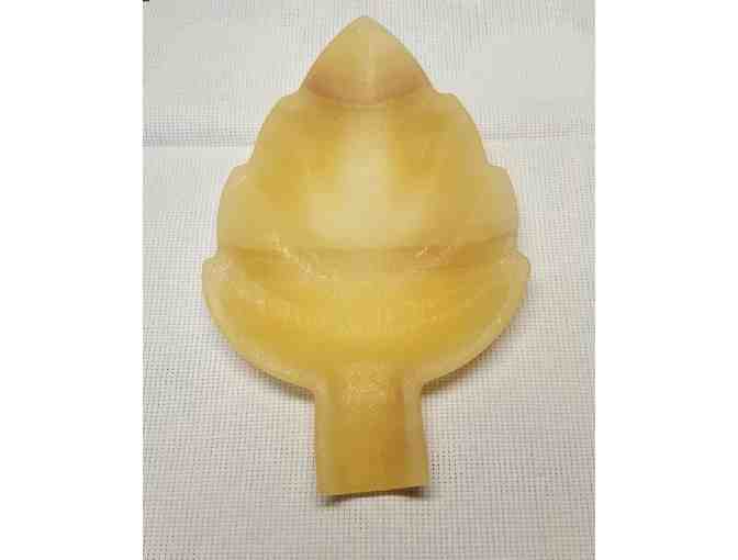 Beautiful stone dish in shape of leave/tree measures 5" wide by 7" long.
