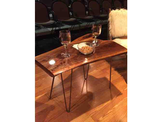 This table is skillfully designed and built by Vermont Stage's very own scenic designer and has appeared in our most recent production of The Call. This one-of-a-kind piece is a beautiful addition to your living room!