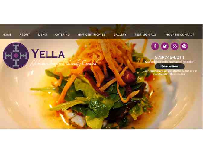 The winning bidder will recieve a $25 gift certificate to Yella, A Modern Mediterranean Grille.
