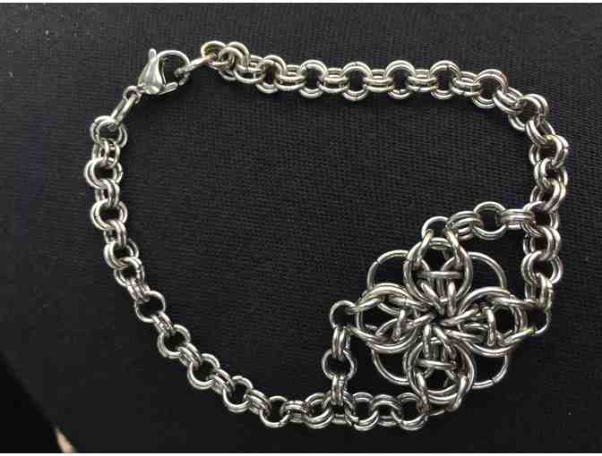 7.5 in "Irish Flower" Chain Maille Bracelet - Stainless Steel Jump Rings Woven together one at a time.