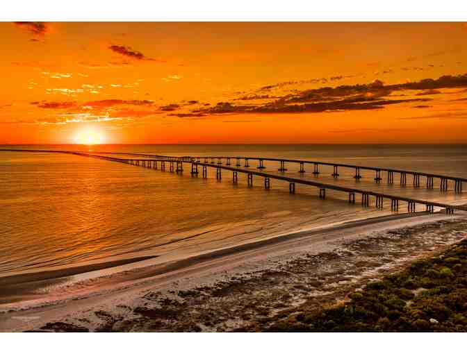 This stunning 12 x 18" image of the Chesapeake Bay Bridge Tunnel at sunset is printed on a ChromaLuxe Photo Panel and is ready to hang. Metal prints have 2 to 4 times the image stability of traditional silver based photo papers, so you will enjoy this beauty for a long time.