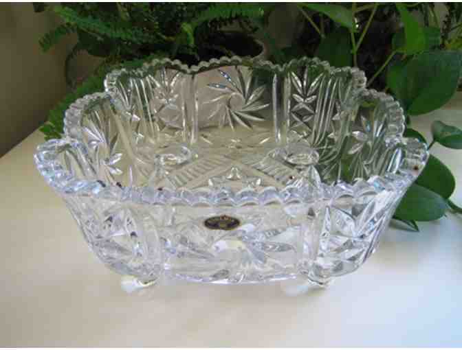 Over 24% Lead Crystal with Amazing Cut Glass. Square with Four Legs. Scalloped Edges on top. Must See to appreciate