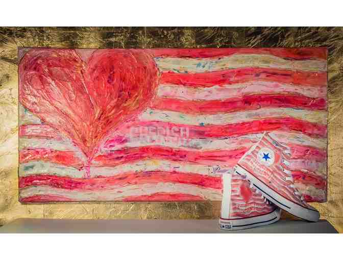 Original painting "Cherish" 20" x 40" acrylic on canvas, framed. In addition, a pair of Limited Edition, matching Converse Chuck Taylor All Stars, created by Converse for a special Autumn de Forest promotion with Nordstrom. Hand signed by Autumn. A collector's item.
