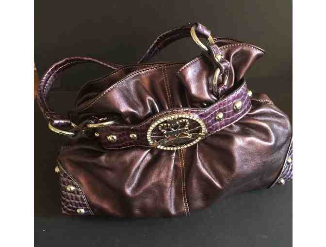 Kathy Van Zeeland Plum cinched shoulder purse.  12" wide, 9" tall