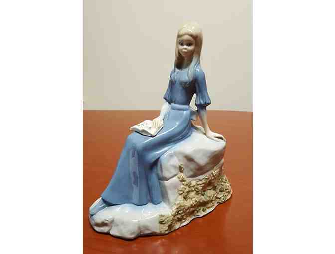 Paul Sebastian Design-Ceramic Figurine of blue lady sitting ready a book