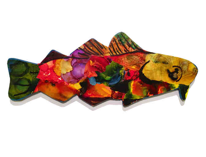 Medium & Size: Alcohol ink on wood, sprayed with clear acrylic. 21 7/8" L x 8 5/8" H x 3/4" D. For indoor display only.