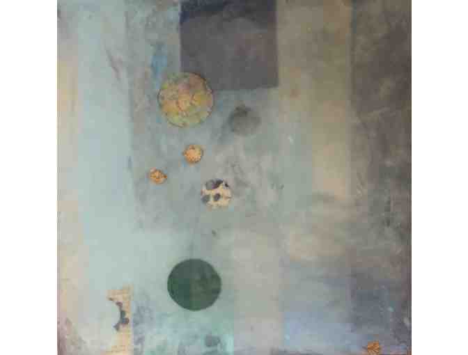 You are bidding on this beautiful art piece titled "Guest of Merely Me" (from an ee cummings poem) is a mixed media piece that includes monotype, encaustic (wax), and hydrangea petals created by WSP Parent Laura Deem.
