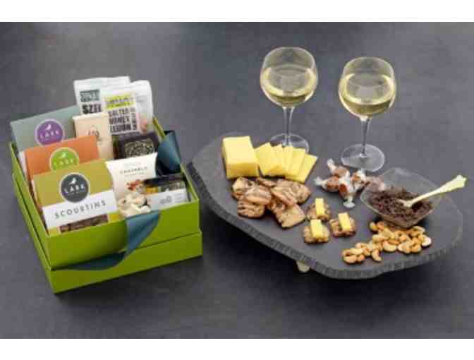 At Lark Fine Foods, our selection of treats in the Lark Savory box are delightful, particularly when served with a crisp glass of white wine. We selected three of Lark's most coveted savory cookies: the Scourtin, Salted Rosemary Shortbread and Burnt Sugar & Fennel Shortbread, and paired them with Plymouth Black Truffle Vermont Cheddar, Bee’s Knees Szechuan Peanuts, Bee’s Knees Salted Honey Cashews, McCrea’s Sea Salt Caramels and Gracious Gourmet Black Olive Spread. This is a truly elegant gift for the most discerning foodie.