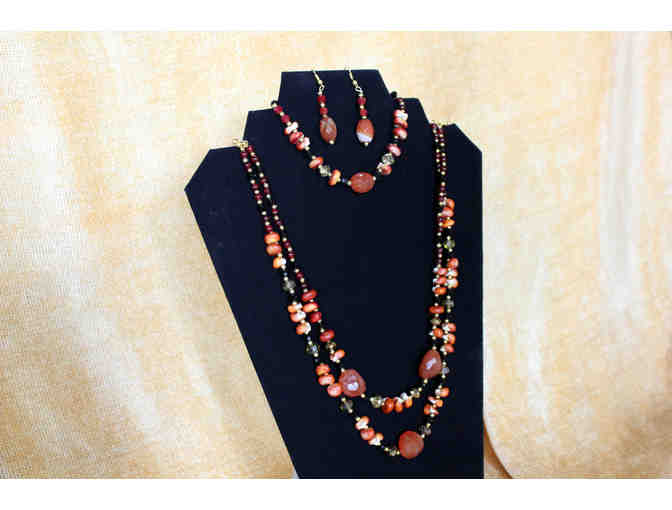 Jewlery Set made of Flint Corn-Carnelian Stones and Glass Beads