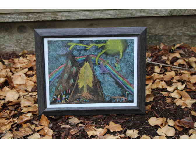 This art work was created on black card stock paper with colored blackboard chalk.