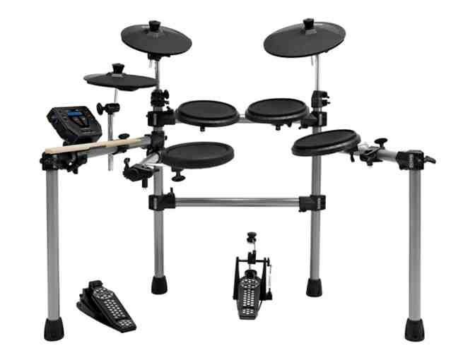 The Simmons SD500KIT full-sized 5-piece electronic drum kit includes four drum pads, three cymbal pads, hi-hat controller and an integrated kick pad.