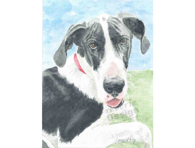 A wonderful 8" x 10" keepsake painted by artist Connie Roy of Reverie Design. Connie will create a custom beautiful watercolor of your beloved pet to cherish forever.