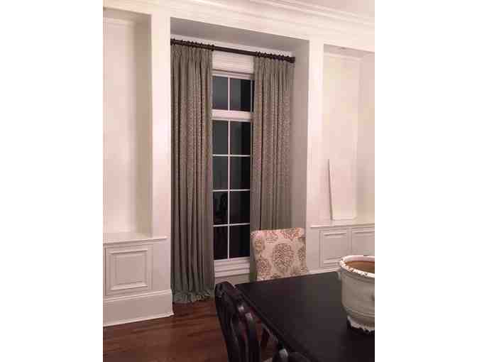 "One pair of Custom Draperies including Professional Installation. Customers choice of designer linen fabric. Three width lined panels up to 120" finished length. Drapery hardware not included. Minimum Retail Value of $1,250.00"