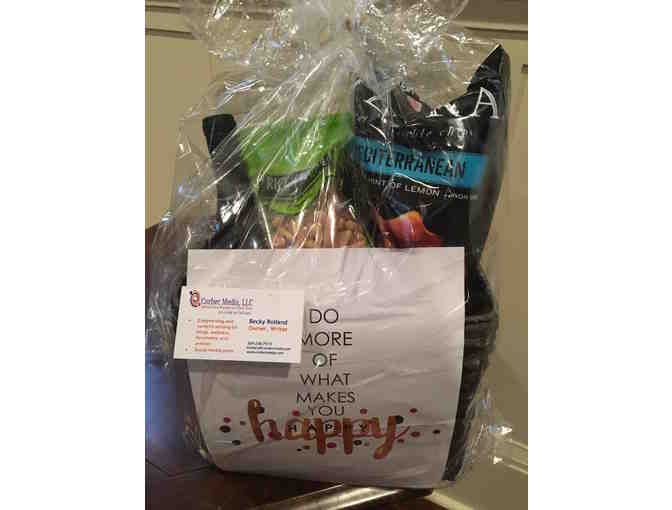 You are bidding on a wine basket with one bottle of wine and artisinal chips.