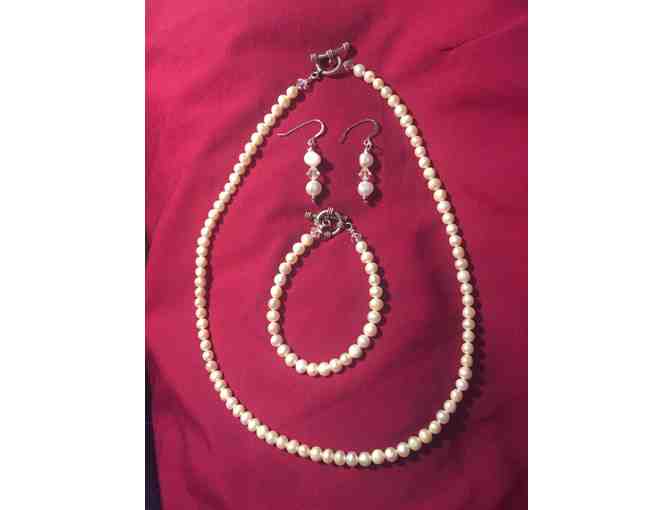 Pearl Necklace and Ear Rings with Swarovski Crystal and Sterling Silver