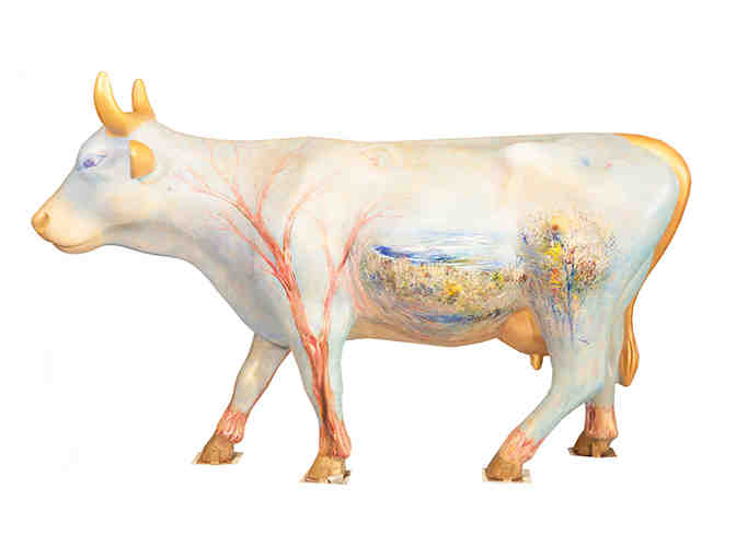 THE ART: These beautiful bovine full-size sculptures were hand painted by California artists, some taking over a month to complete. Some by entire teams. Others by individual accomplished artists. Some with celebrity engagement. Easy to mooove. Perfect for exterior or interior display.