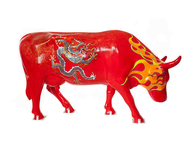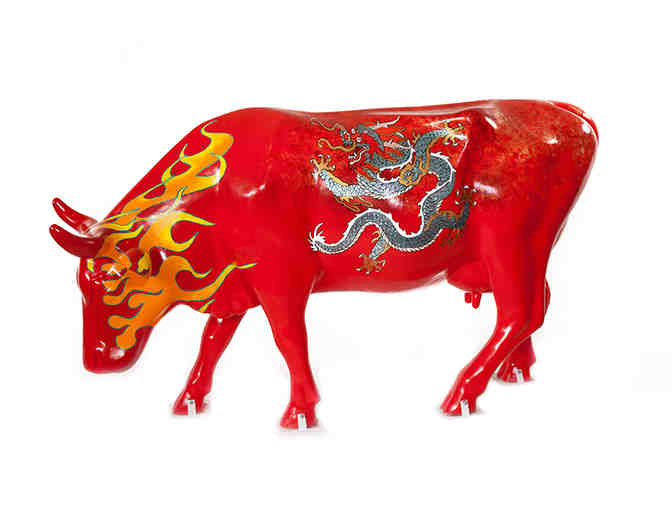 THE ART: These beautiful bovine full-size sculptures were hand painted by California artists, some taking over a month to complete. Some by entire teams. Others by individual accomplished artists. Some with celebrity engagement. Easy to mooove. Perfect for exterior or interior display.