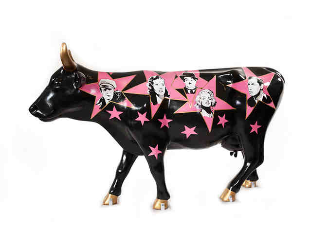 THE ART: These beautiful bovine full-size sculptures were hand painted by California artists, some taking over a month to complete. Some by entire teams. Others by individual accomplished artists. Some with celebrity engagement. Easy to mooove. Perfect for exterior or interior display.