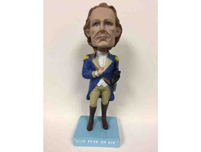 The limited edition bobblehead is 7" high and fashioned after the John Stark statue in Concord.
