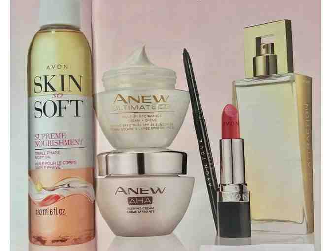 Indulge in this luxurious 6 piece collection which includes Skin So Soft Supreme Nourishment Triple Phase Body Oil, Anew Ultimate Multi-Performance Day Cream, Anew AHA Refining Cream, Avon True Color Glimmersticks Eye Liner in Blackest Black, Avon True Clor Lipstick in Country Rose and Avon Attraction for Her Eaude Parfum. PLUS several extra bonus surprises for the winning bidder to make you look and feel your best!
