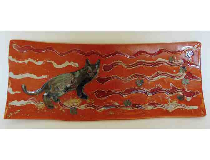 # 55 Flat Pottery with Cat & Scenery (Single Piece)