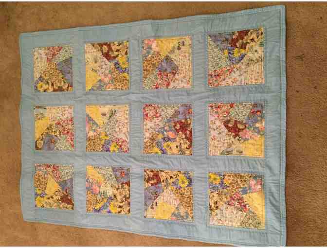 12 Block floral quilt, Pieced by Representative Cathryn Harvey, machine quilted in an 8-sided star pattern on each block.
