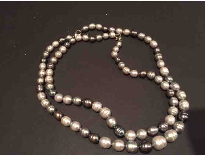 Two gray & ivory freshwater pearl necklaces. One is 18" the other 20"