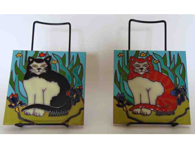 Clay Cats - Pacific Blue Tiles - Paintings or Hot Plates (Set of Two)