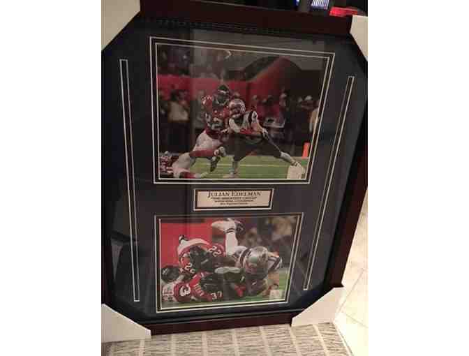 If the NE Patriots' 2017 Super Bowl win was nothing short of miracle, then Julian Edelman's catch, pictured here, was beyond a miracle! Double print, beautifully framed and matted, 18" x 22" overall dimensions. "Greatest Catch" is yours for the taking.